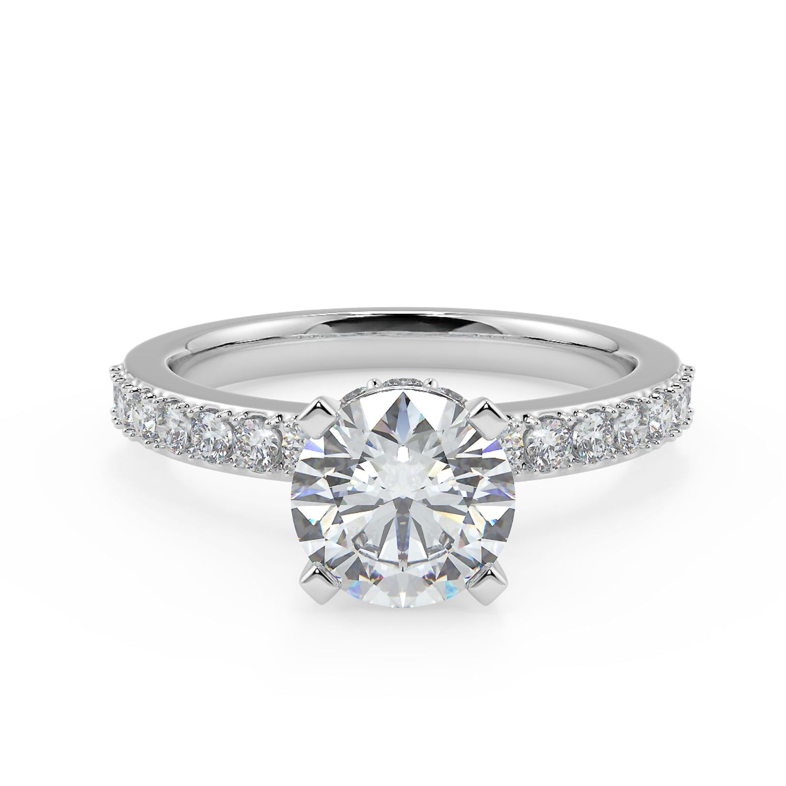 1–2 Carat Round Lab Grown Diamond Solitaire Ring | Pavé Band | IGI Certified | 18K White Gold
