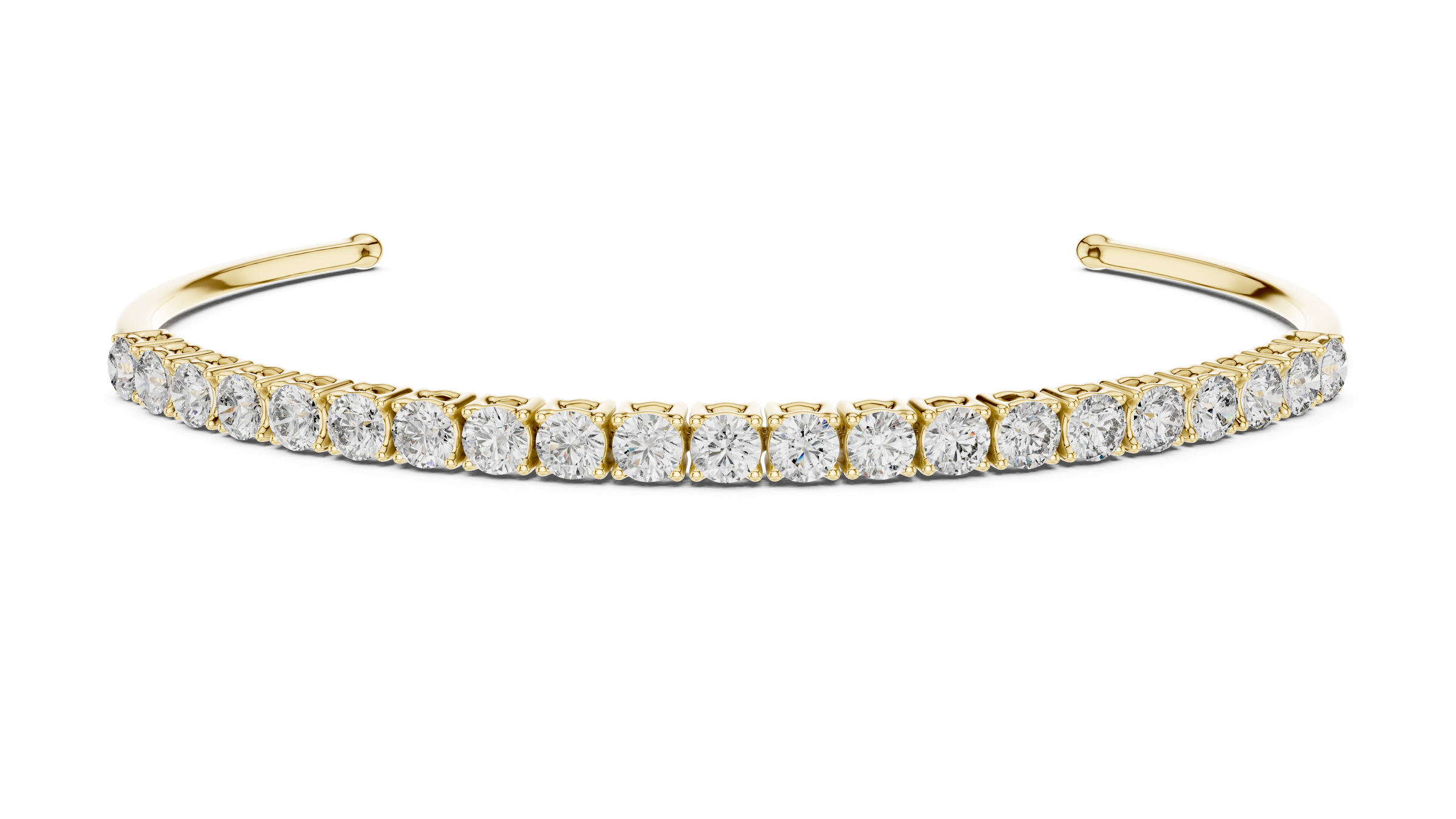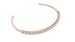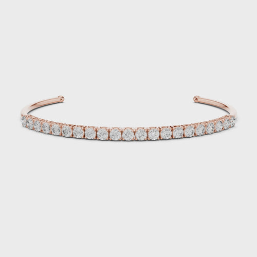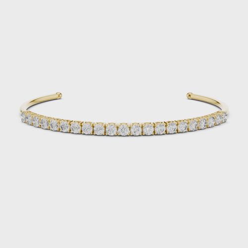 Crafted in 18K gold, this elegant piece features a row of round lab-grown diamonds set along the front curve of the bangle, creating a seamless line of brilliance while maintaining a light, minimal structure.