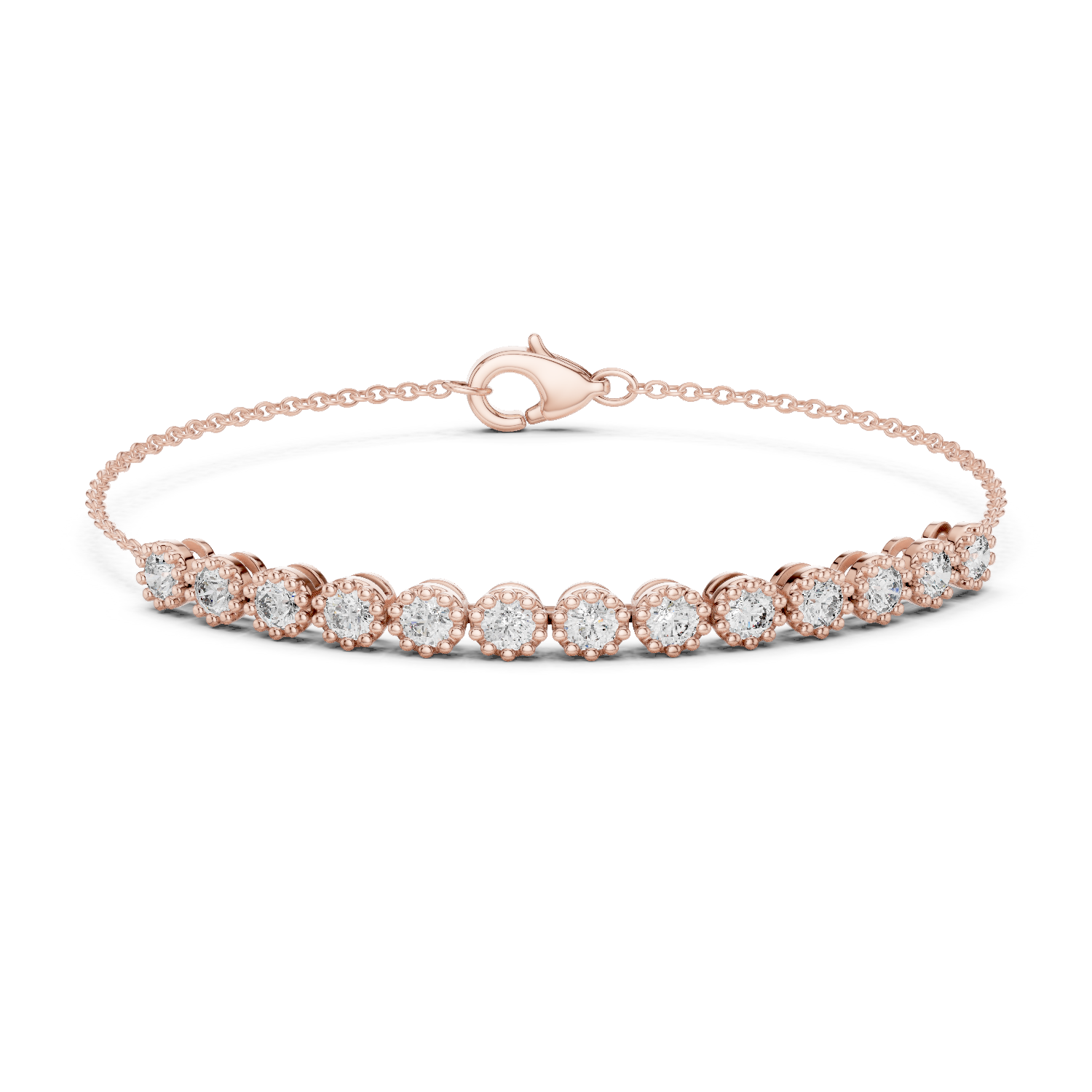 Milgrain Detail Lab-Grown Diamond Chain Bracelet in 18K Gold | Light Weight Bracelet