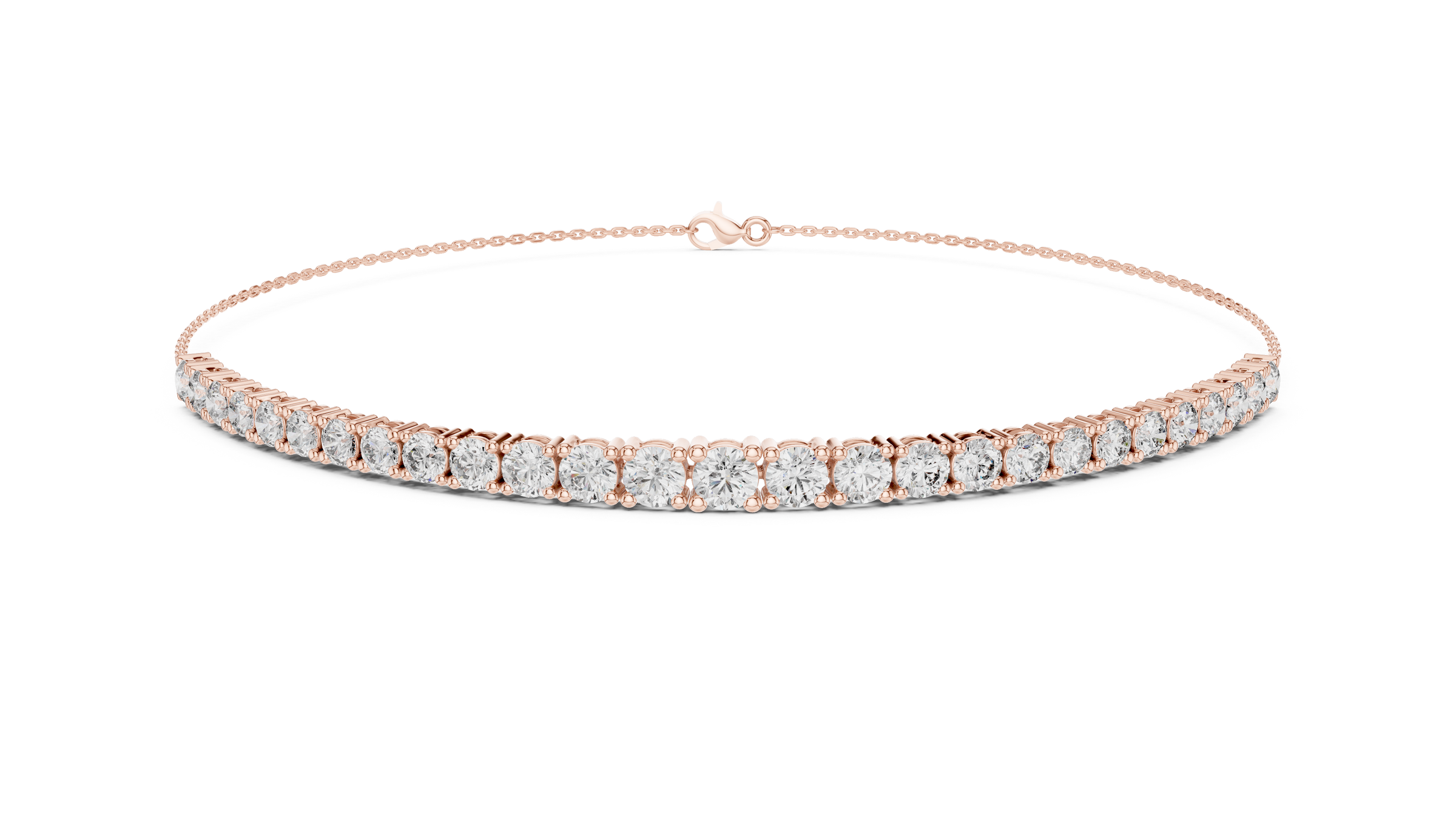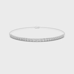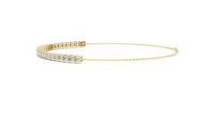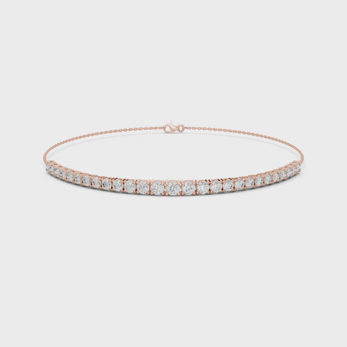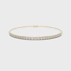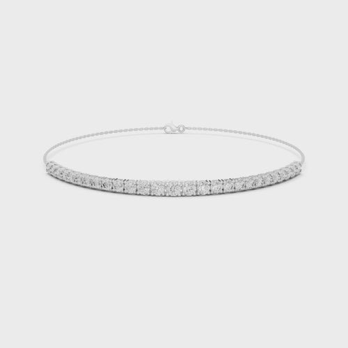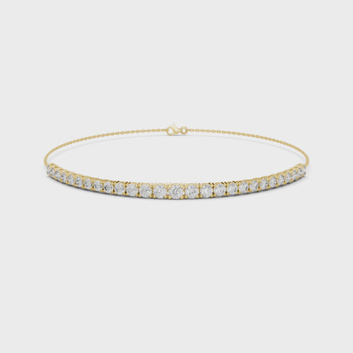 Crafted in 18K gold, this piece features a fine chain that supports a continuous line of round brilliant lab-grown diamonds, creating a floating effect on the wrist.