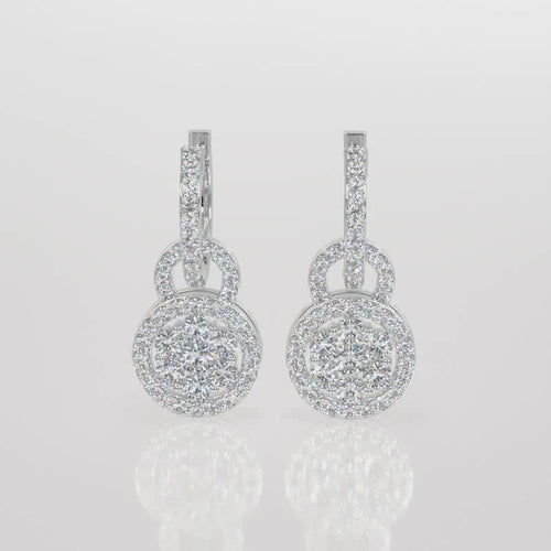 Elevate your elegance with our Radiant Floral Cluster Lab-Grown Diamond Drop Earrings. These stunning earrings feature a mesmerizing floral cluster of lab-grown diamonds, surrounded by a halo of smaller diamonds that amplify their sparkle. The intricate design is complemented by a diamond-encrusted hoop and a delicate connecting loop, adding an extra touch of sophistication and glamour. Crafted in polished white gold, these earrings are perfect for special occasions or adding a luxurious touch to your everyday attire. Celebrate the blend of beauty and sustainability with these exquisite lab-grown diamond earrings, designed for the modern, eco-conscious jewelry enthusiast.