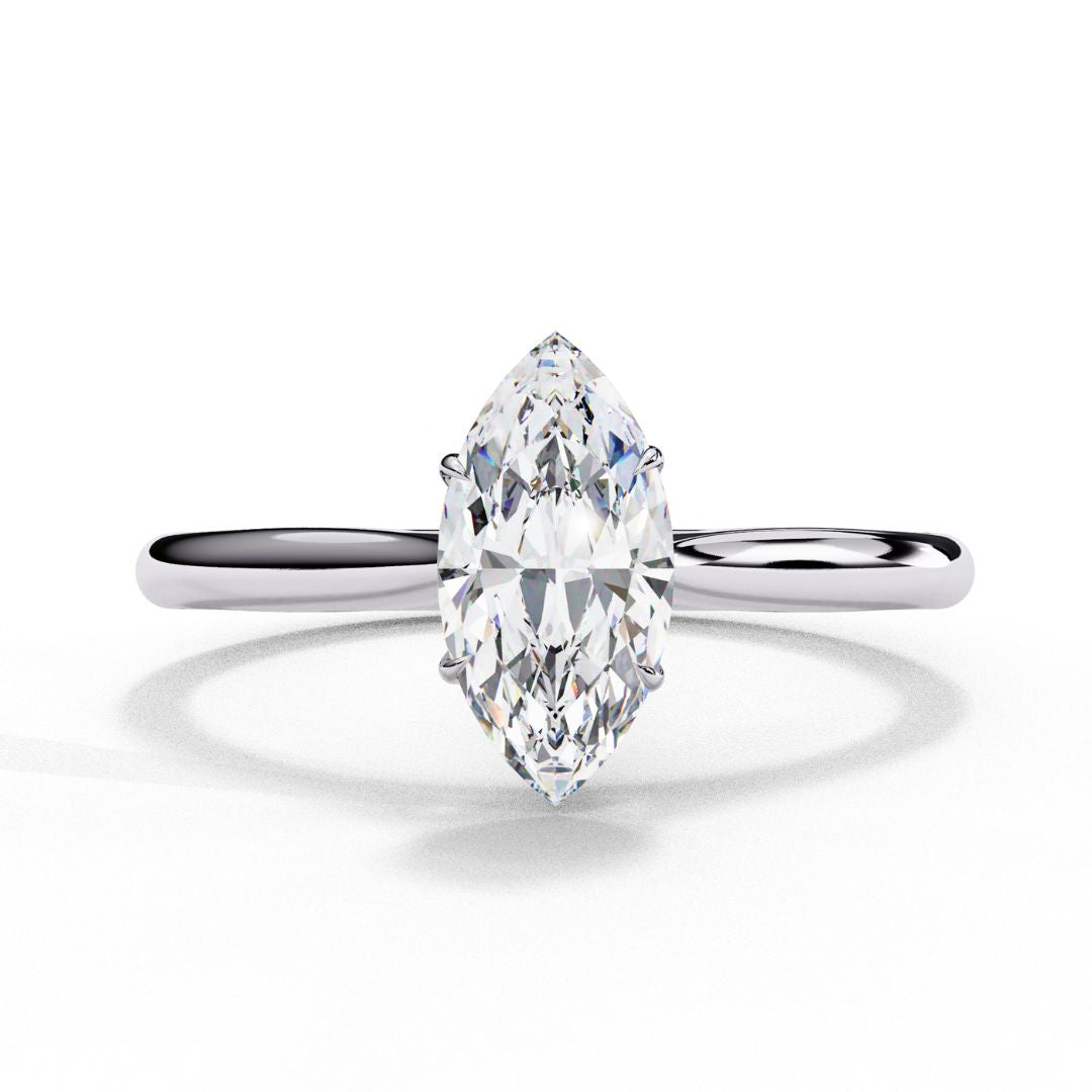 1–3 Carat Marquise Cut Lab Grown Diamond Solitaire Ring | Elongated Brilliant Shape | IGI Certified | 18K White, Yellow & Rose Gold