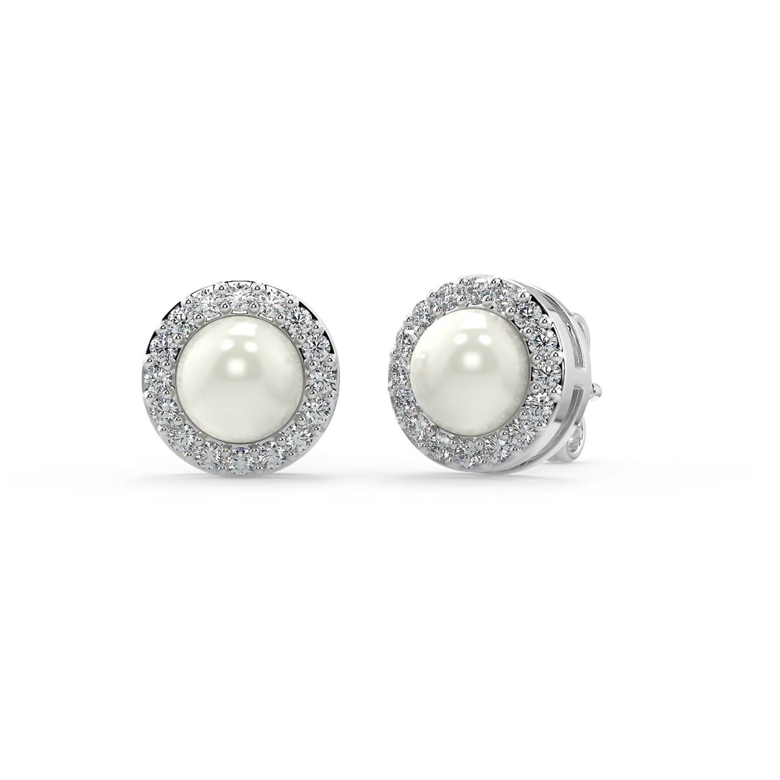 5mm Pearl & Lab-Grown Diamond Halo Stud Earrings in 18K White, Yellow & Rose Gold
