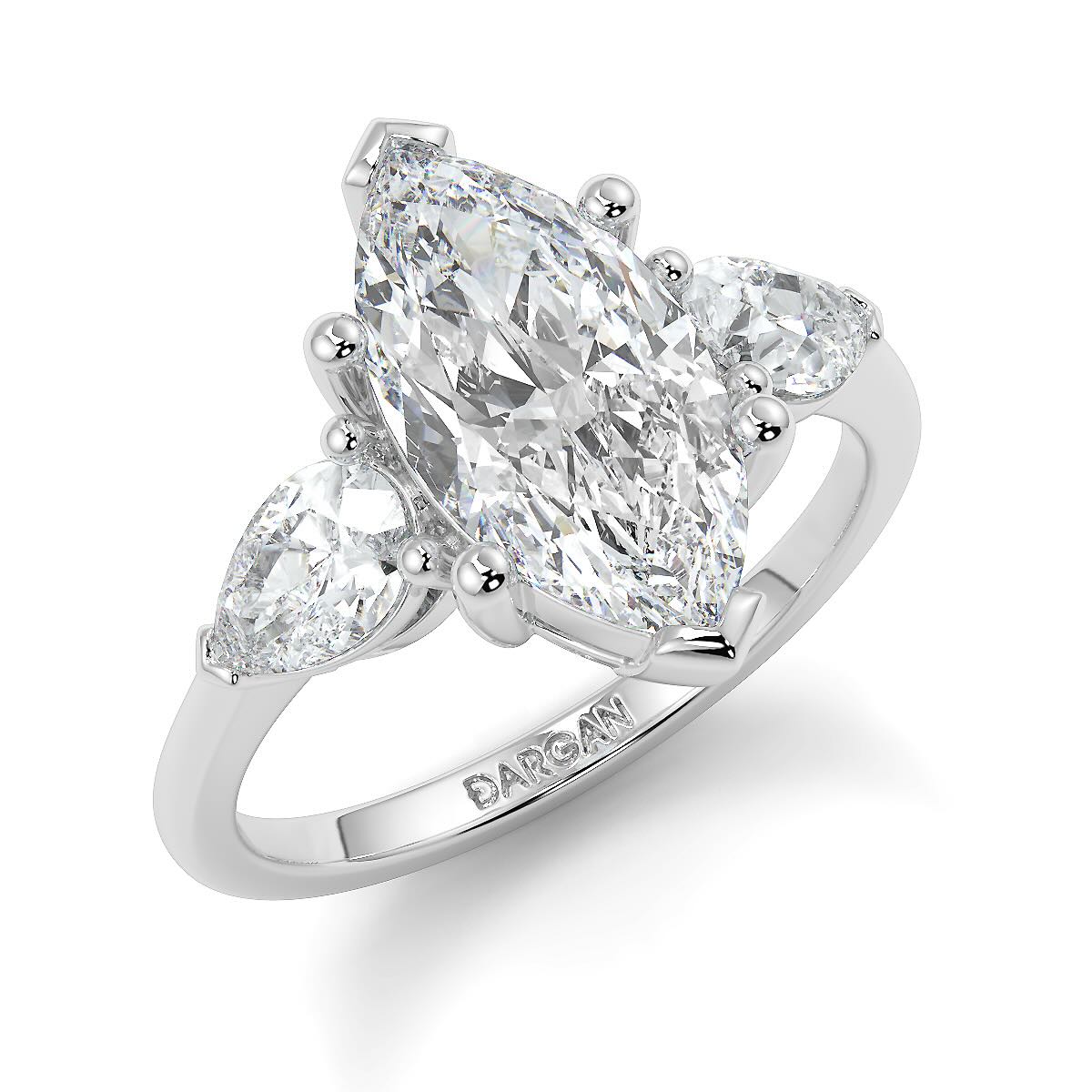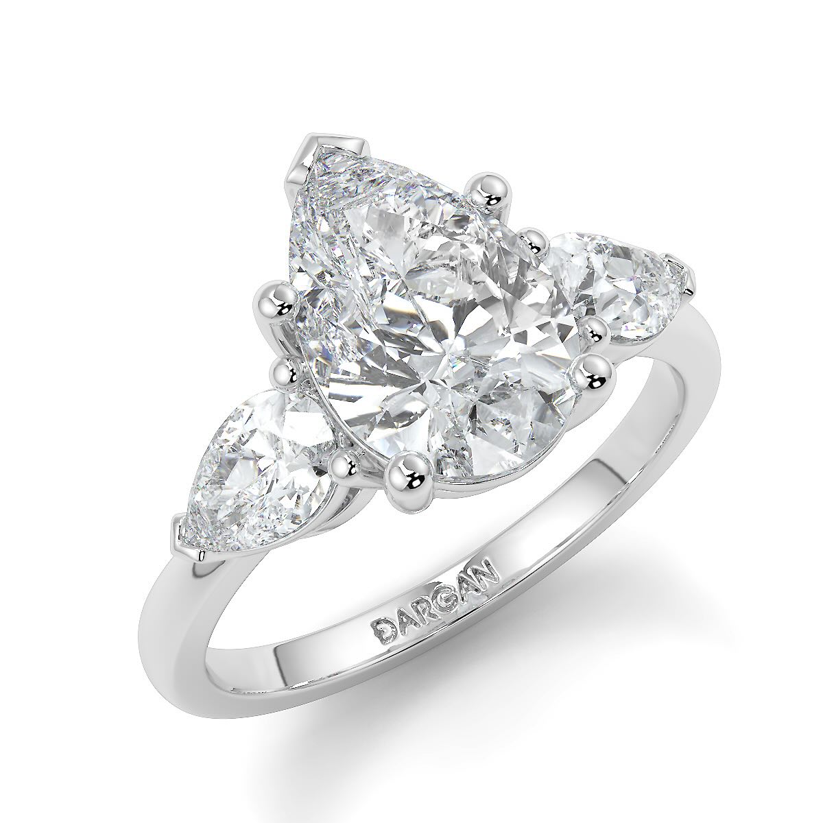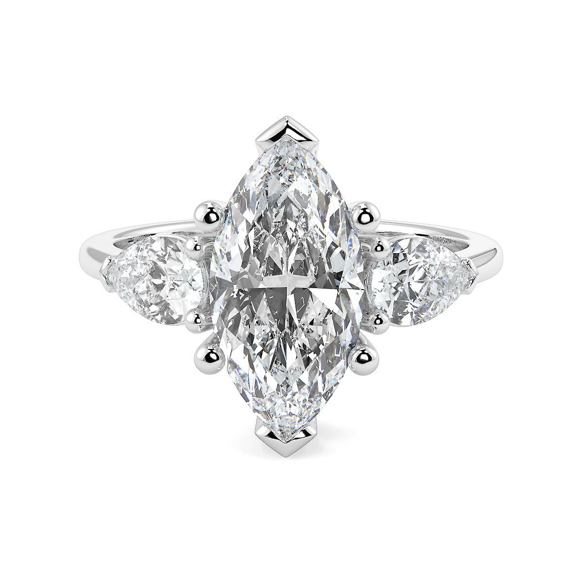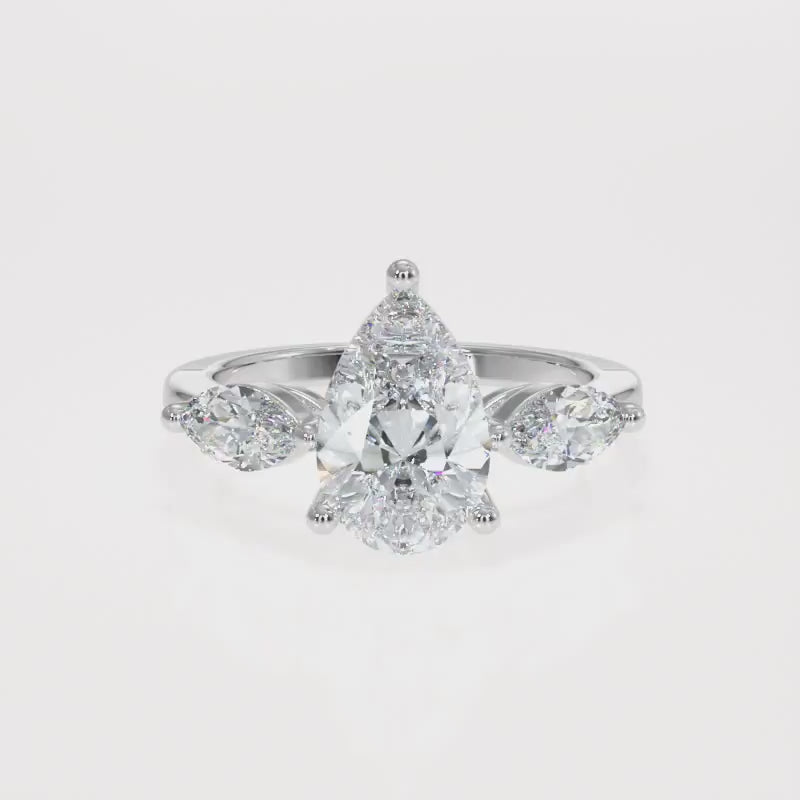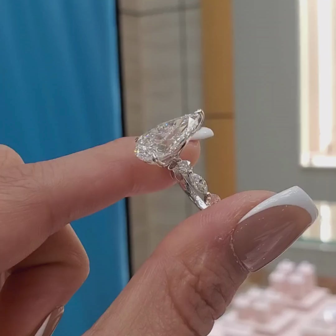 3–5 Carat Pear Lab Grown Diamond Solitaire Ring with Marquise & Round Side Stones