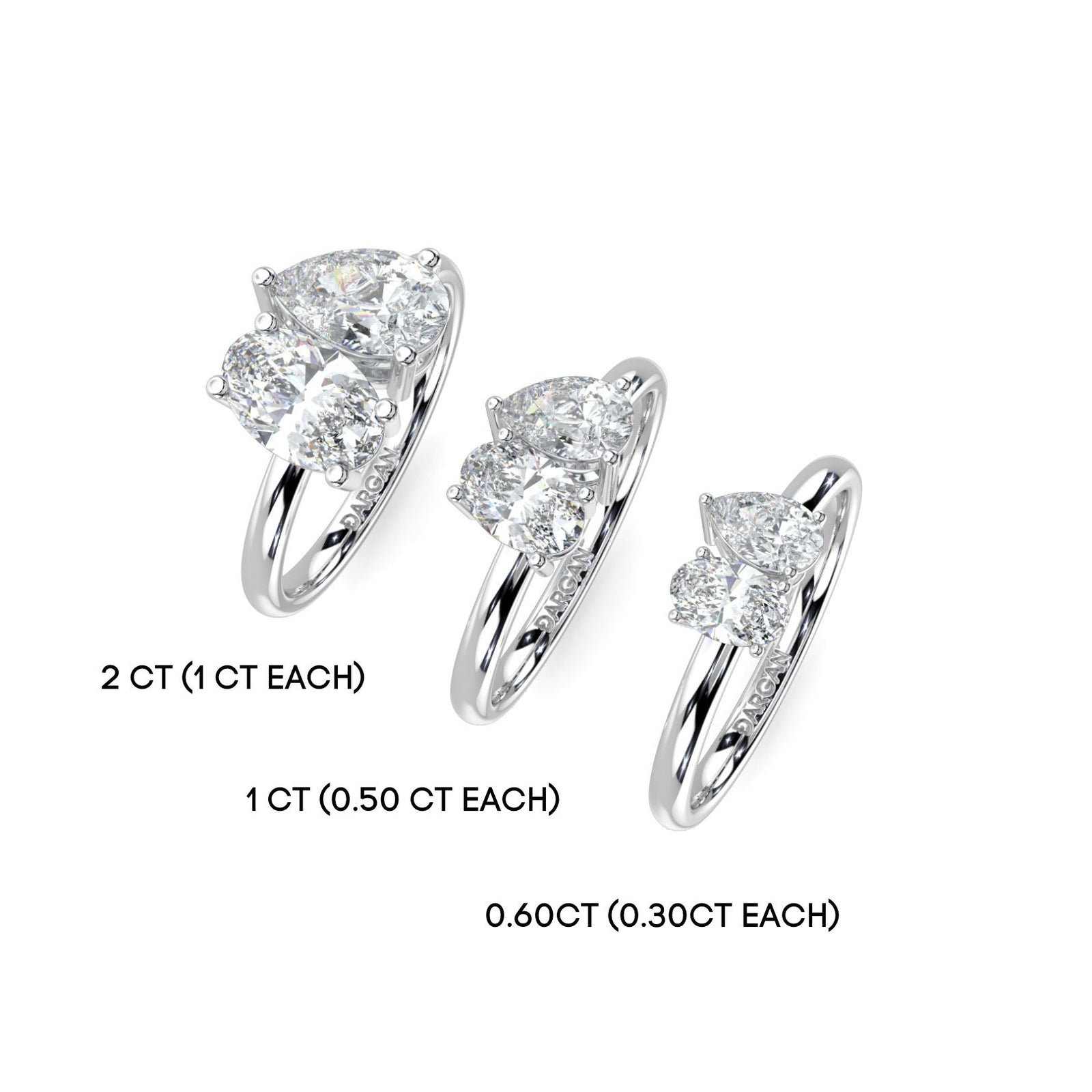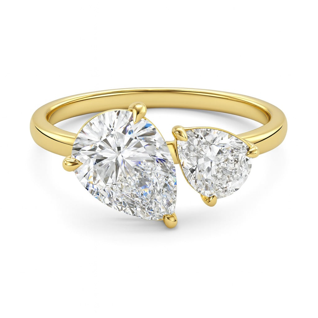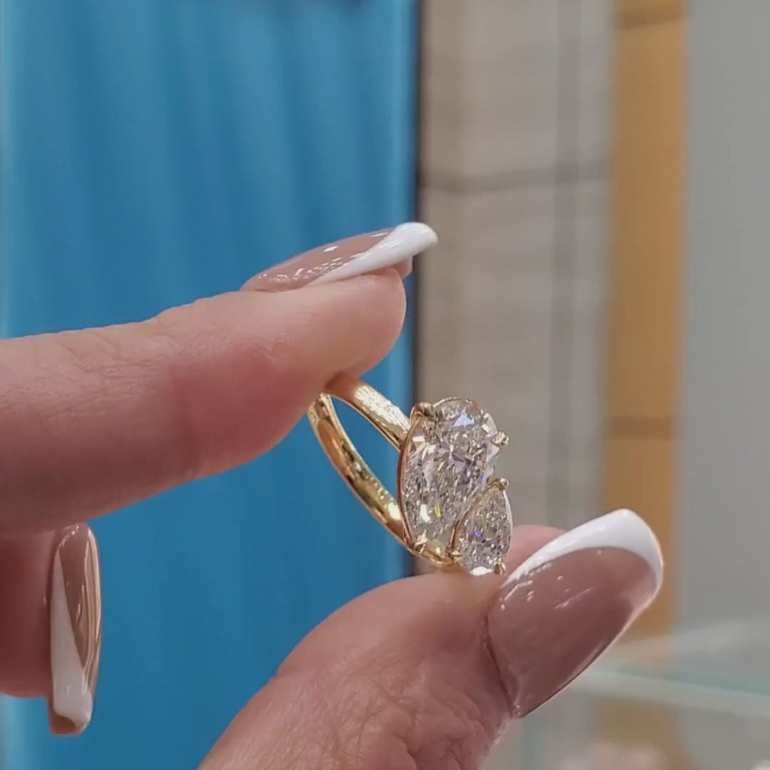 2.00ct Pear Solitaire with 0.50ct Pear Toi et Moi ring – Lab Grown Diamond Ring in 18K Yellow, White & Rose Gold
