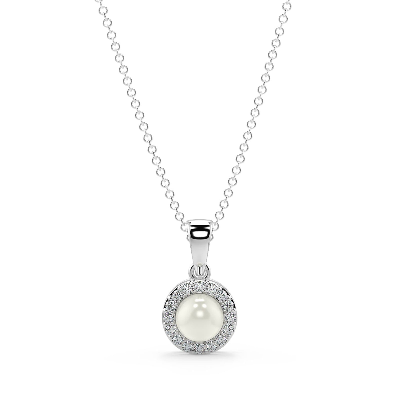 5mm Pearl & Lab-Grown Diamond Halo Pendant in 18K White, Yellow & Rose Gold