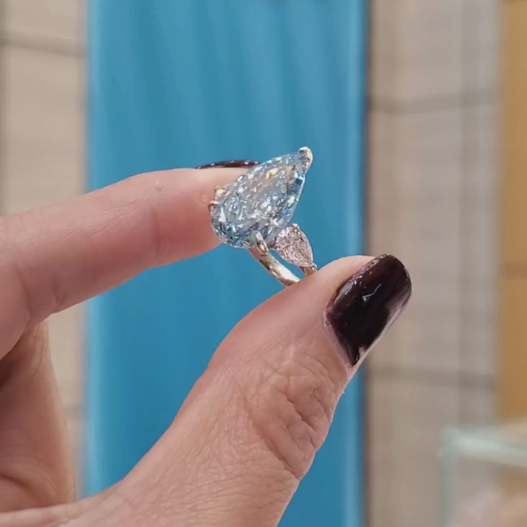 7CT Fancy Vivid Blue Lab Grown Diamond Ring with 0.50CT Each Pear Side Diamonds | Luxury Engagement Ring