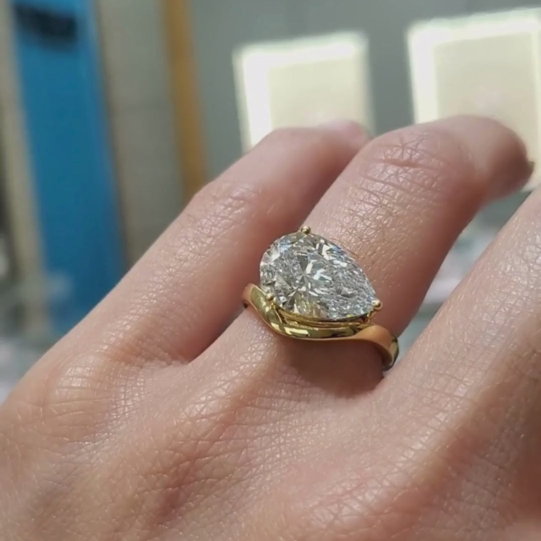 4 Carat Pear-Cut Lab-Grown Diamond Solitaire Ring | Custom 18K Gold with Optional Pave Band