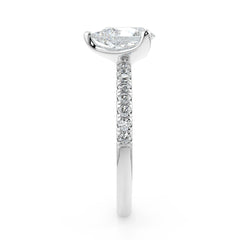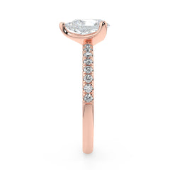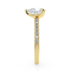 This Pear Cut Lab Grown Diamond Ring features an elongated centre stone in an elegant 3-prong setting for maximum brilliance. Available in 1, 1.5, 2, 2.5 and 3 carats, it is crafted in 18K white, yellow or rose gold with pavé-set lab grown diamonds on the band. Each centre stone is IGI certified for outstanding sparkle, clarity and symmetry. A refined, sustainable and timeless fine-jewellery piece.