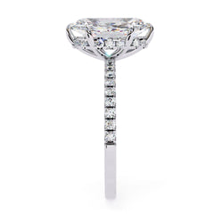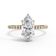 A hidden diamond halo wraps the base of the centre stone, catching the light from beneath, while a pavé-set diamond band adds all-around brilliance. Crafted in 18K Yellow, White, or Rose Gold, this setting is handcrafted to order in Dubai using IGI-certified, lab grown diamonds — making it the perfect combination of luxury and ethical responsibility.
