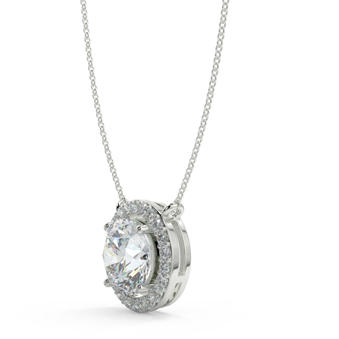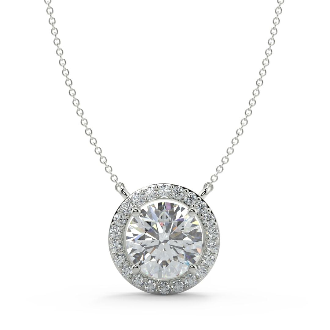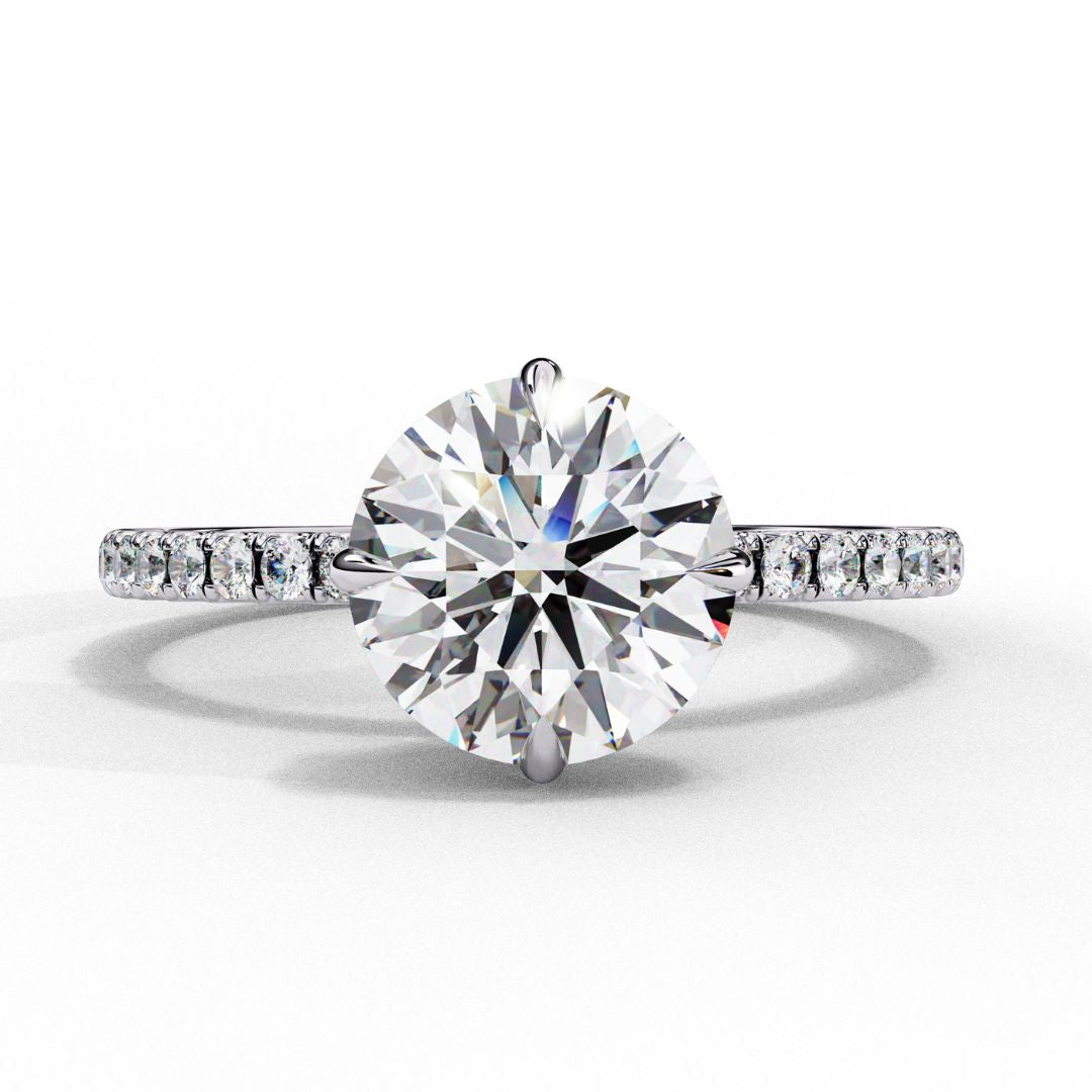 1–2 Carat Round Lab Grown Solitaire Diamond Halo Ring in 18K Gold | Pavé Band Engagement Ring