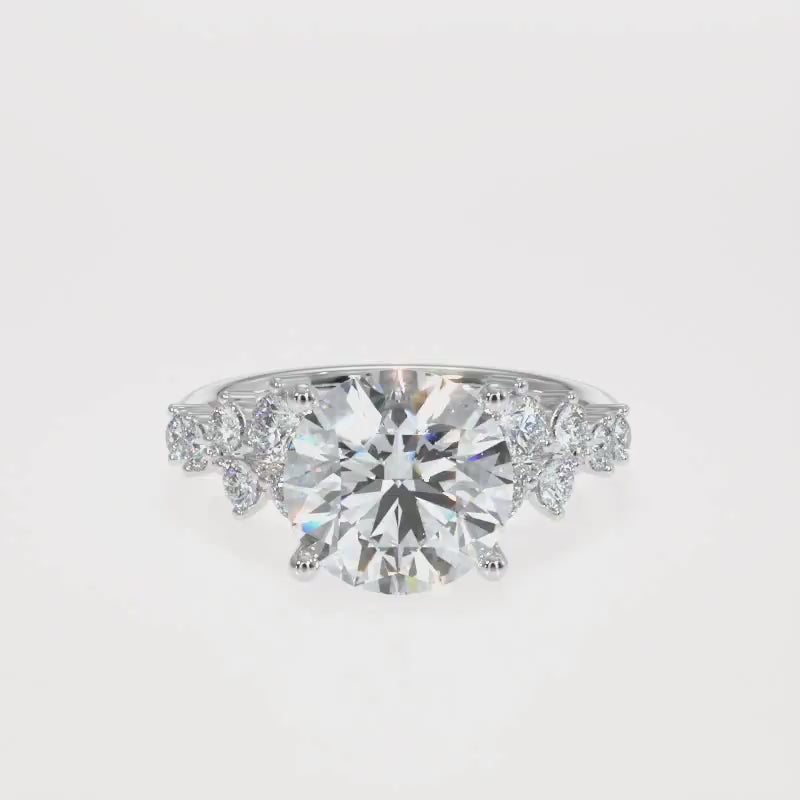 3.00 to 5.00 Carat Round Brilliant Lab-Grown Diamond Ring with Tapered Cluster Side Stones in 18K Gold