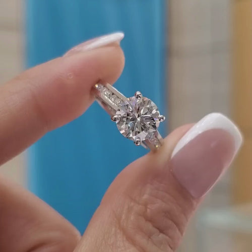 Solitaire Size: 2 Carat + 0.3 Carat Sides (2.3 Carat) Metal & Colour: 18kt White Gold Ring Size (US): 4