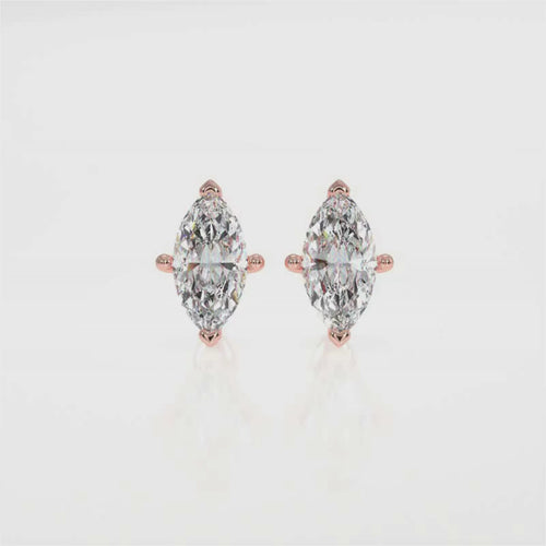 0.50–4 Carat Marquise Cut Lab Grown Diamond Stud Earrings | Brilliant Solitaires | 18K White, Yellow & Rose Gold