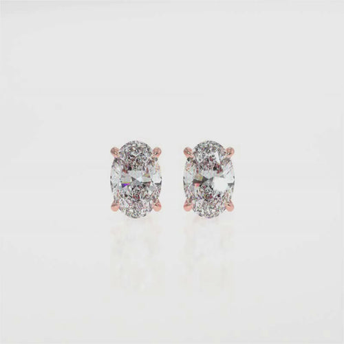 0.50–4 Carat Oval Lab Grown Diamond Stud Earrings | Classic Solitaire | 18K White, Yellow & Rose Gold