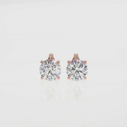 0.50–6 Carat Round Lab Grown Diamond Stud Earrings | Classic Solitaire | 18K White, Yellow & Rose Gold