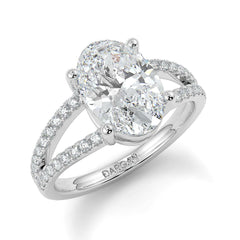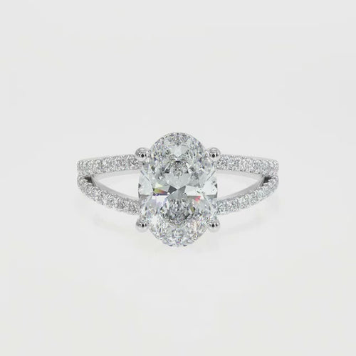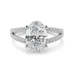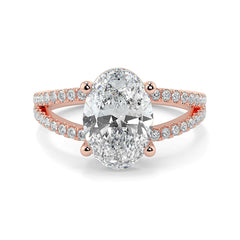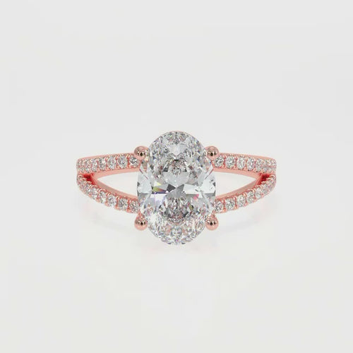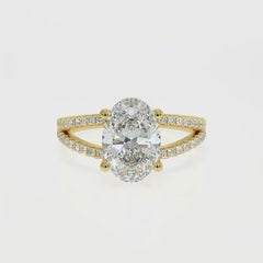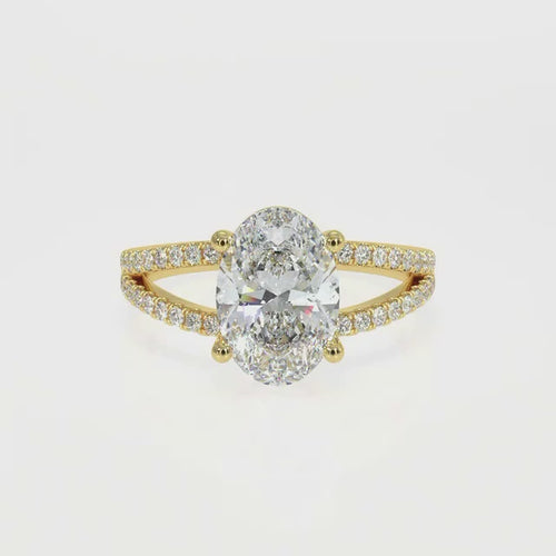 1–5 Carat Oval Cut Lab Grown Solitaire Diamond Ring with Split Shank in 18K Gold | Pavé Band