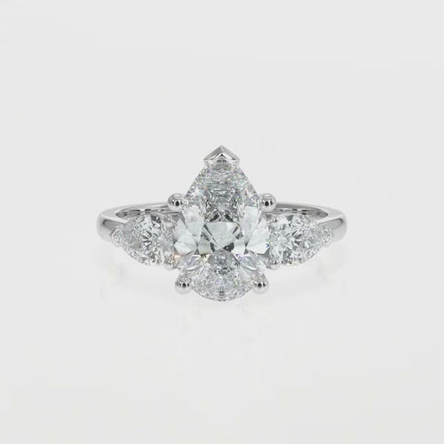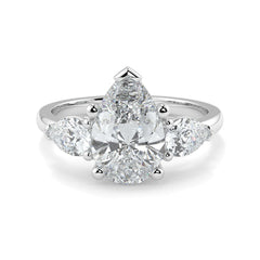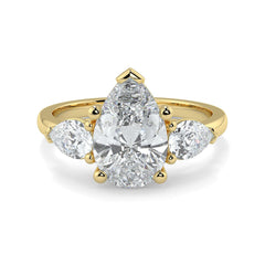1–5 Carat Pear & Round Lab Grown Solitaire Diamond Trilogy Ring in 18K Gold