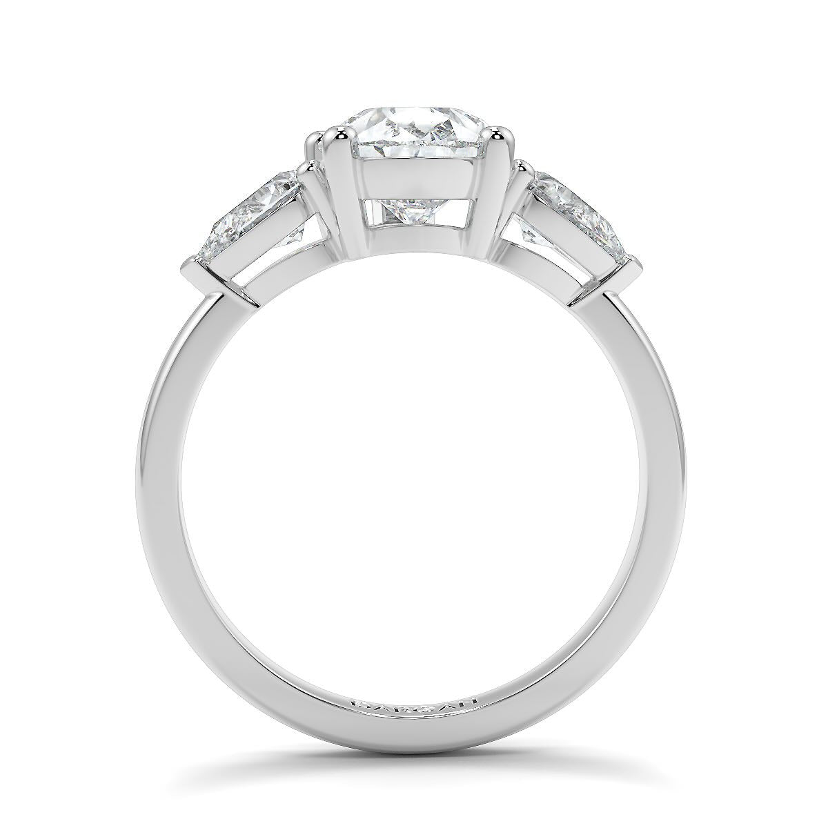 Solitaire size shown in the product images/videos: 3 Carat + 0.60 Carat Sides (3.6 Carat)