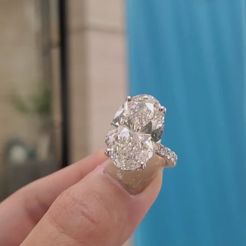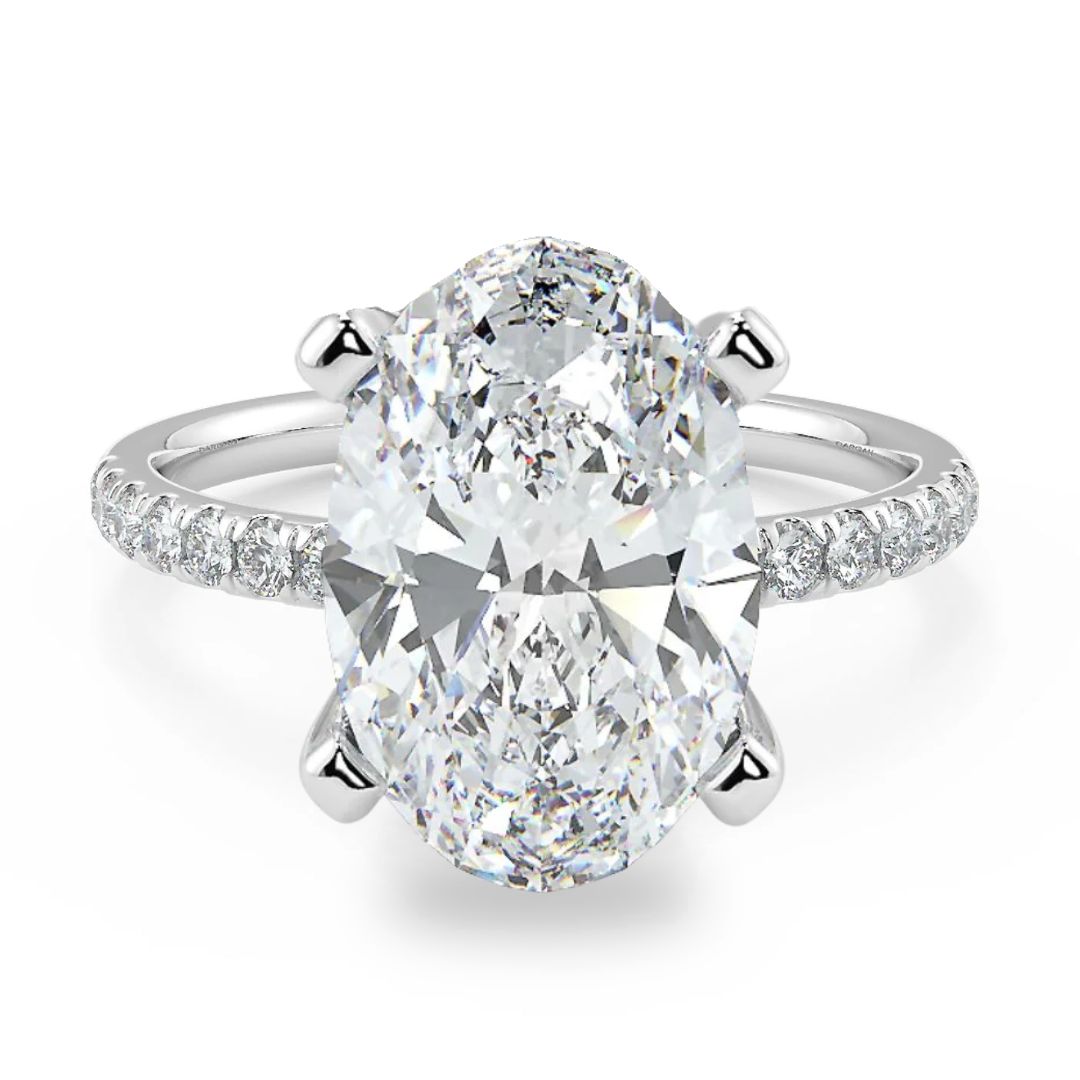 10 Carat Oval Cut Diamond Solitaire Ring with Pave Band | Lab-Grown| 18K Gold