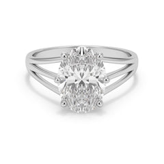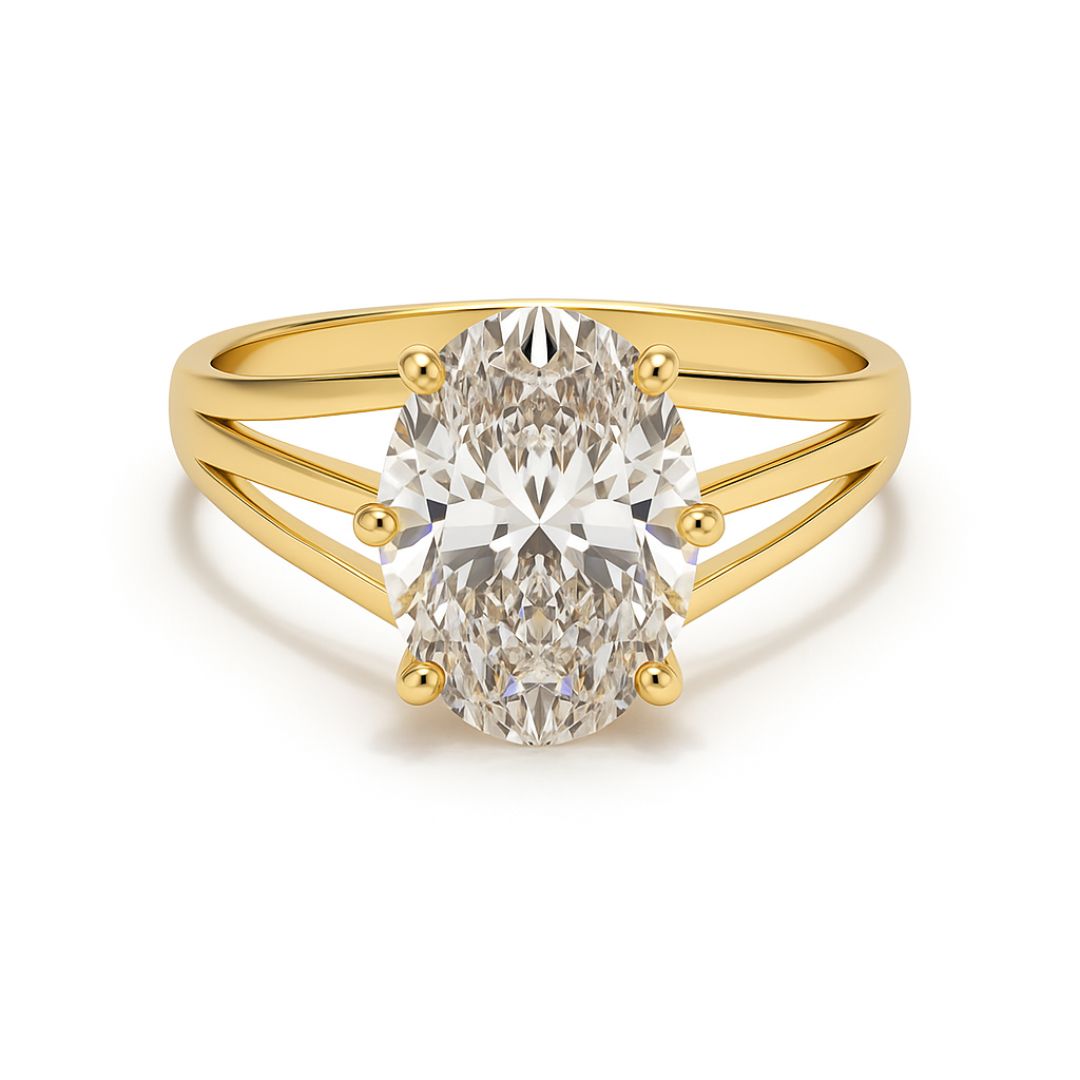 Shop this stunning 2-carat oval lab-grown diamond engagement ring. Available in 18K white, yellow, or rose gold, with a solitaire or split band design. Perfect for timeless elegance.