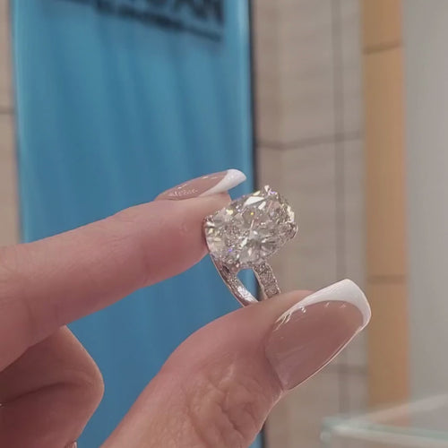 Elevate your love story with this breathtaking 5 Carat Oval Lab Grown Diamond Engagement Ring. Designed to captivate from every angle, the oval-cut center stone radiates brilliance while the hidden halo adds a touch of sparkle beneath, enhancing the diamond’s size and fire.