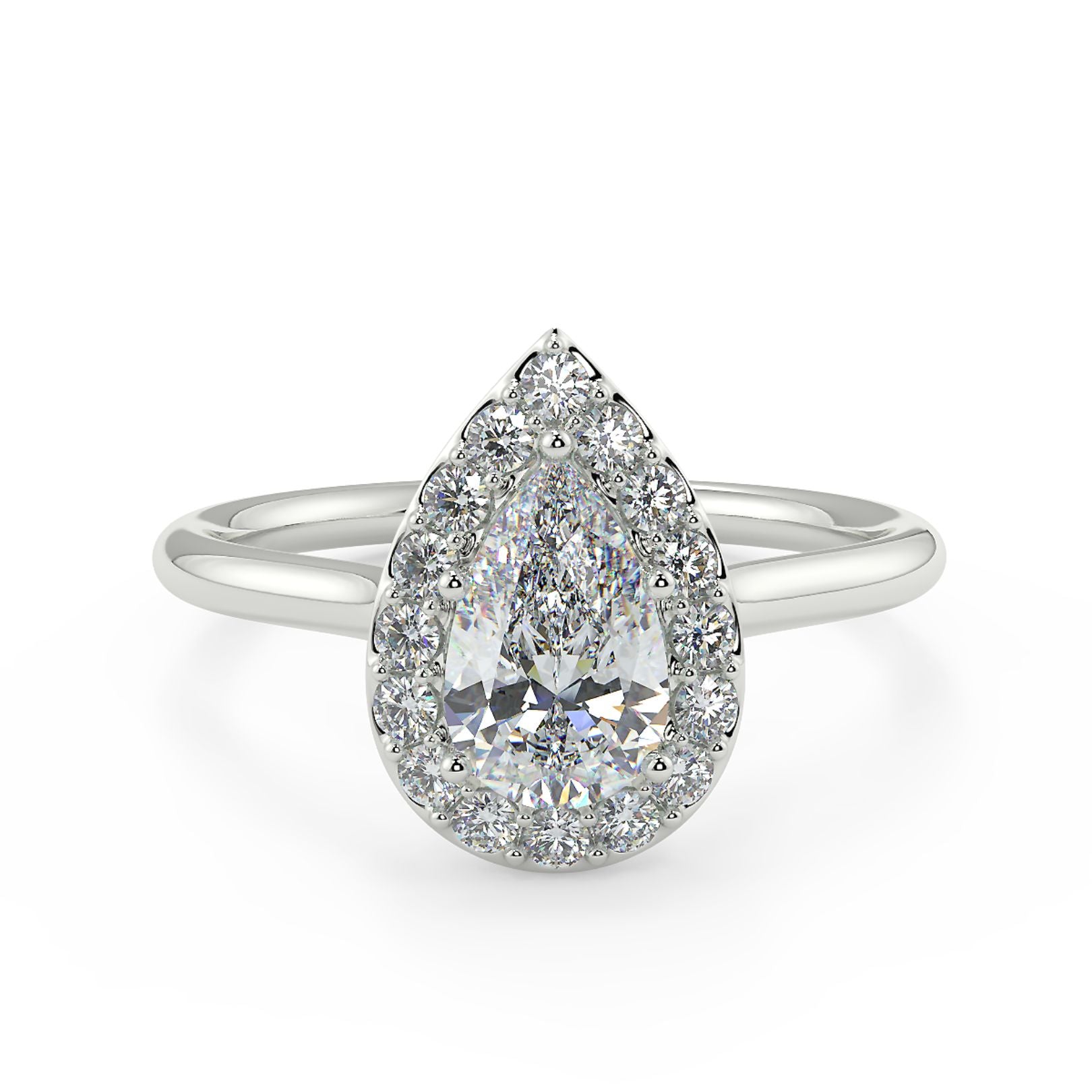 1–2 Carat Pear Cut Lab Grown Solitaire Diamond Halo Ring | Brilliant Teardrop Shape | IGI Certified | 18K White Gold