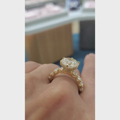 3-5 Carat Round Brilliant Diamond Solitaire Engagement Ring in 18K Yellow Gold | Pavé Band with Diamonds