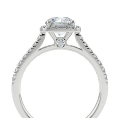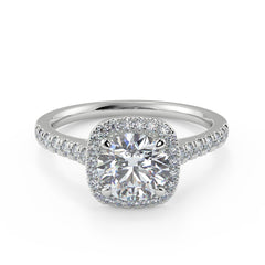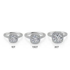 This Round Cut Lab Grown Diamond Cushion Halo Ring features a brilliant round centre stone available in 1 carat, 1.5 carat and 2 carat options. The centre diamond is encircled by a cushion-shaped halo of finely set round diamonds, creating a soft, elegant outline that enhances size and sparkle. The pavé diamond band adds continuous brilliance, giving the ring a luxurious, radiant look. Crafted in premium 18K white gold, each centre diamond is IGI certified for exceptional clarity, symmetry and light performance. A timeless, high-sparkle design combining the brilliance of a round diamond with the modern beauty of a cushion halo.