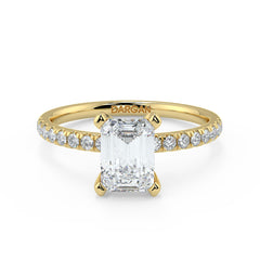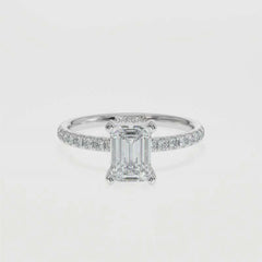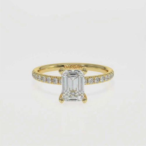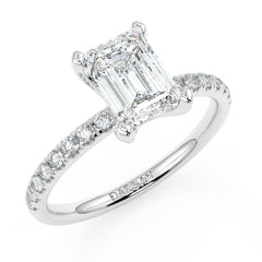 This Emerald Cut Lab Grown Diamond Ring features a sleek step-cut centre diamond available in 1, 1.5, 2, 2.5 and 3 carats. Crafted in 18K white, yellow or rose gold, the pavé band adds refined sparkle. Each centre stone is IGI certified for superior clarity, symmetry and craftsmanship. A modern, elegant and sustainable fine-jewellery design.