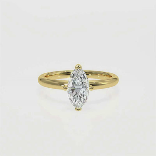 This Marquise Cut Lab Grown Diamond Solitaire Ring features an elongated centre stone that enhances brilliance and finger length. Available in 1, 1.5, 2, 2.5 and 3 carats, set on a clean 18K white, yellow or rose gold band. IGI certified to guarantee clarity, symmetry and sparkle. A luxurious, modern and minimal solitaire.