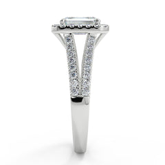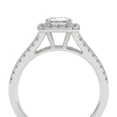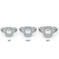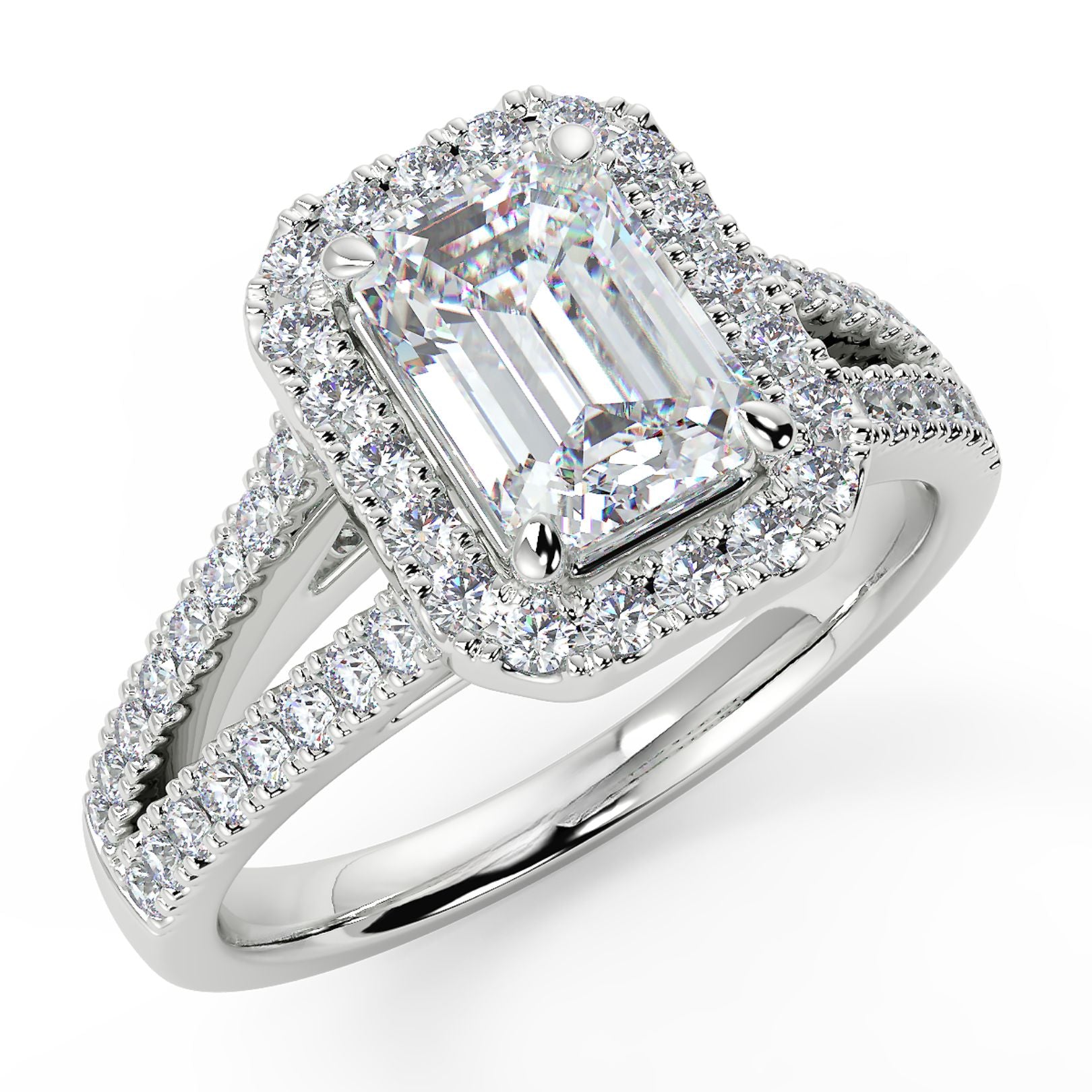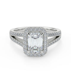 1–2 Carat Emerald Cut Lab Grown Diamond Solitaire Halo Ring | Split Shank Pavé Band | IGI Certified | 18K White Gold