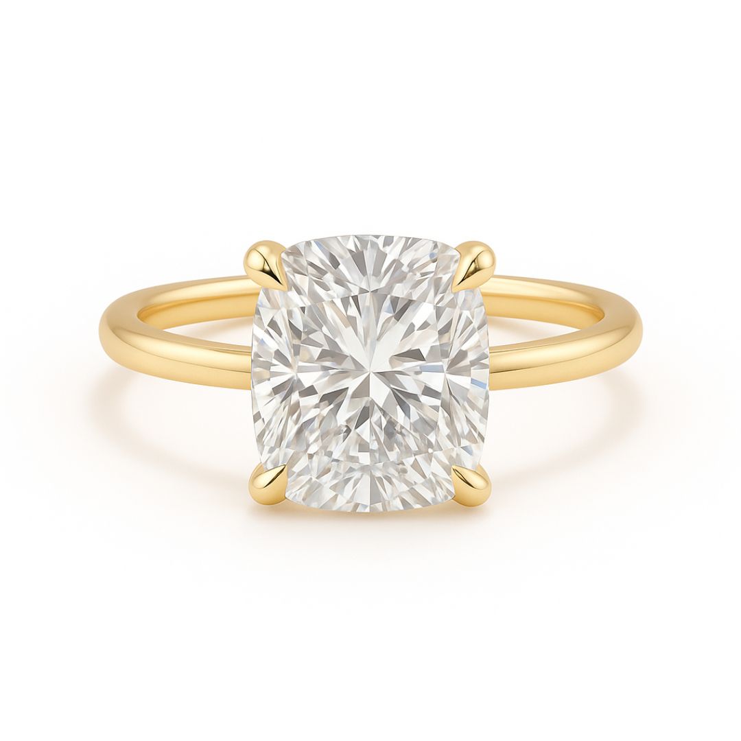 Crafted in your choice of 18kt Yellow Gold, 18kt White Gold, or 18kt Rose Gold, this ring combines luxury and sustainability. The cushion-cut lab grown diamond radiates exceptional sparkle and fire, making it an unforgettable choice for engagements, anniversaries, or milestone celebrations.