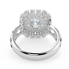 1 Carat Round Lab Grown Diamond Grand Halo Ring | Multi-Layer Pavé | IGI Certified | 18K White, Yellow & Rose Gold