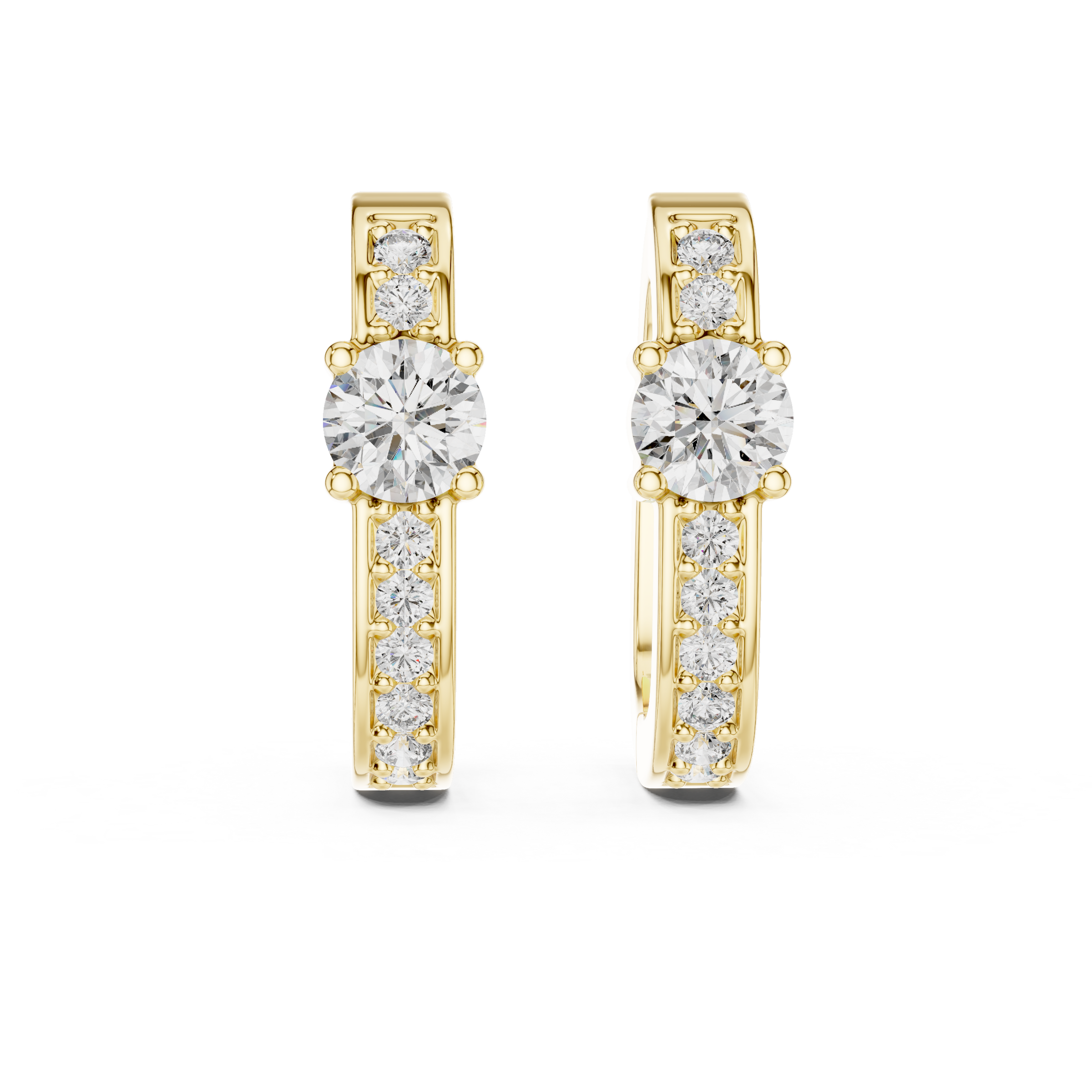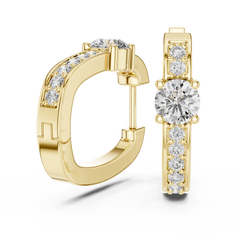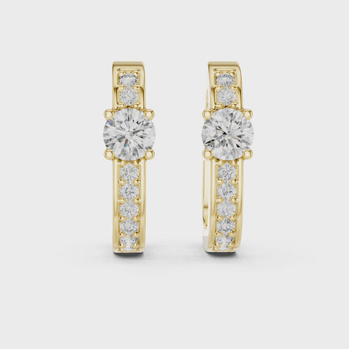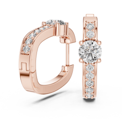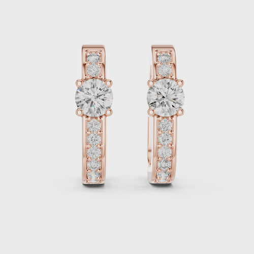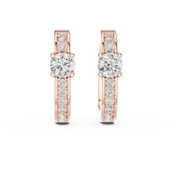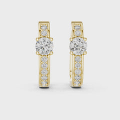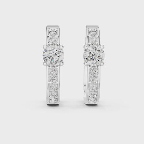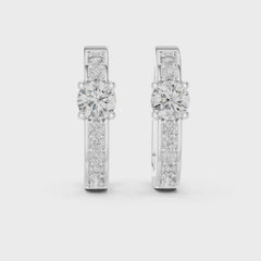 Each earring features a round centre diamond as the focal point, beautifully framed by accent lab grown diamonds along the hoop. The prong setting enhances light reflection, allowing every diamond to shine with maximum brilliance.