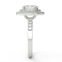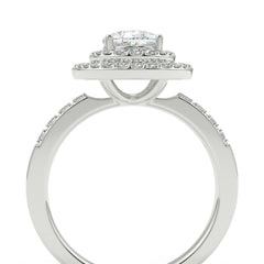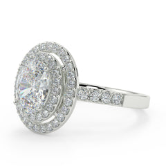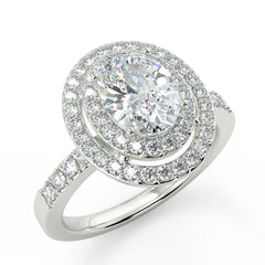 1.5 Carat Oval Lab Grown Diamond Double Halo Ring | Pavé Band | IGI Certified | 18K White Gold